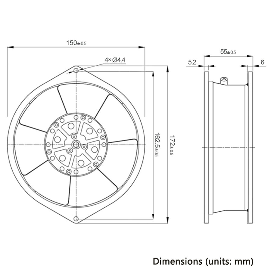 Impeller: Metal impellers are welded to motor rotor, and surface is finished by black electrophoresis anti-corrosion treatment